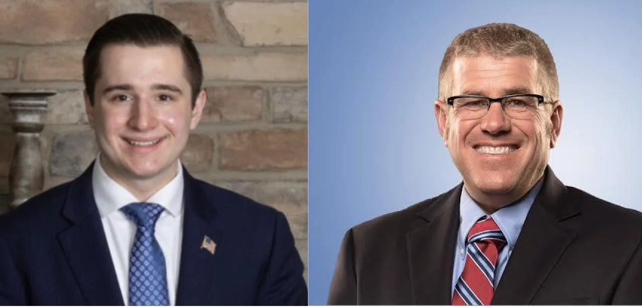 Brett Corrigan (L) of Save Illinois PAC and Darren Bailey (R), a GOP candidate for Illinois Governor